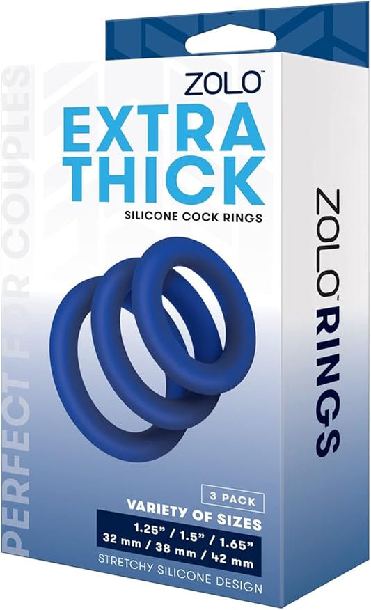 Zolo Extra Thick Silicone Cock Rings - Blue Pack Of 3