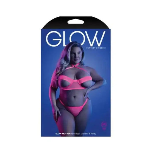 Fantasy Lingerie Glow Slow Motion Peek-a-boo Bra & Panty Neon Pink