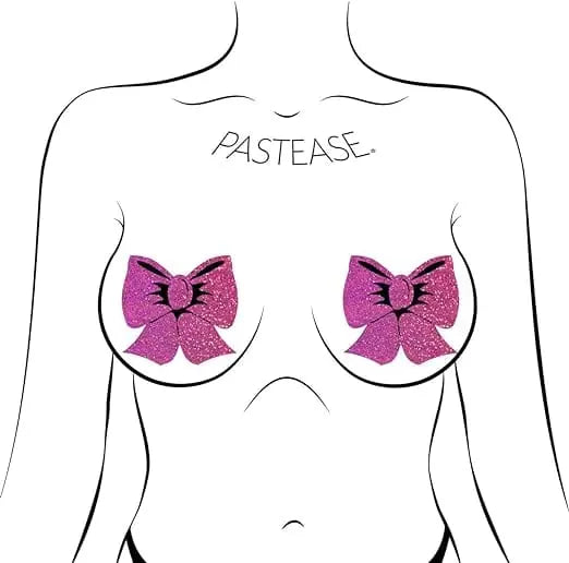 Pastease Bow: Hot Pink Glitter Bows Nipple Pasties